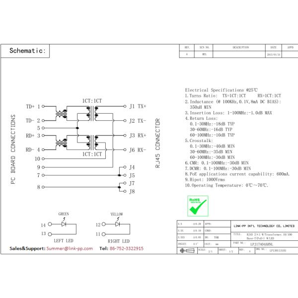 82G-1407GYD2NL | LPJ17404AHNL | LINK-PP | 2x1 100M Rj45 With LEDs |